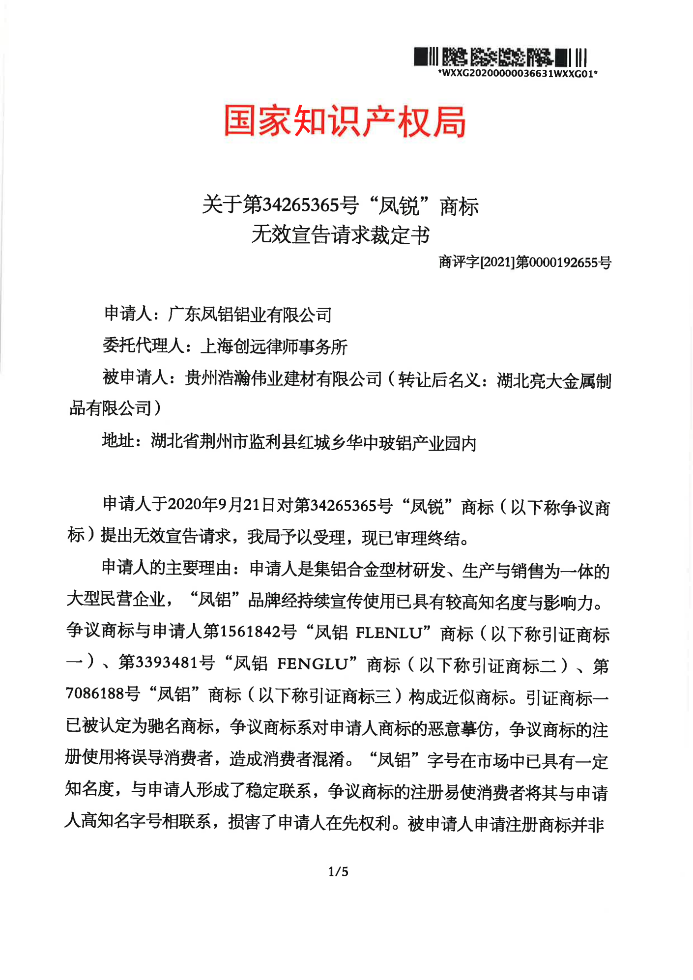 海口辉知队 | 国家知识产权局:“凤锐”商标无效